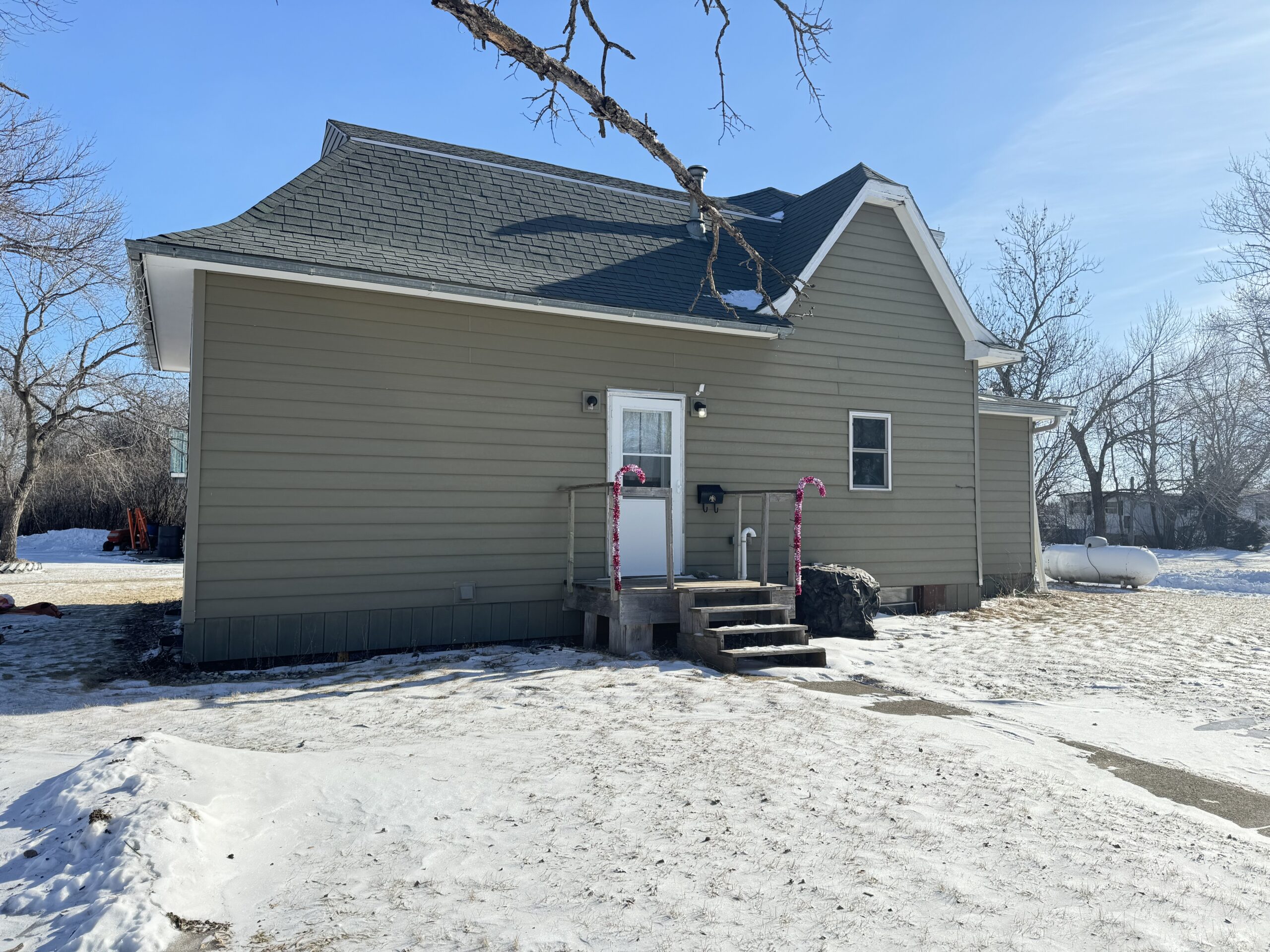 Sitting on a corner lot this one and half story home has two bedrooms, one full bath, two half baths and 1,840 square feet of living space. Detached insualted double stall garage, cement board siding, asphalt singles, forced air propane heat, central A/C, plenty of storage throughout the home.