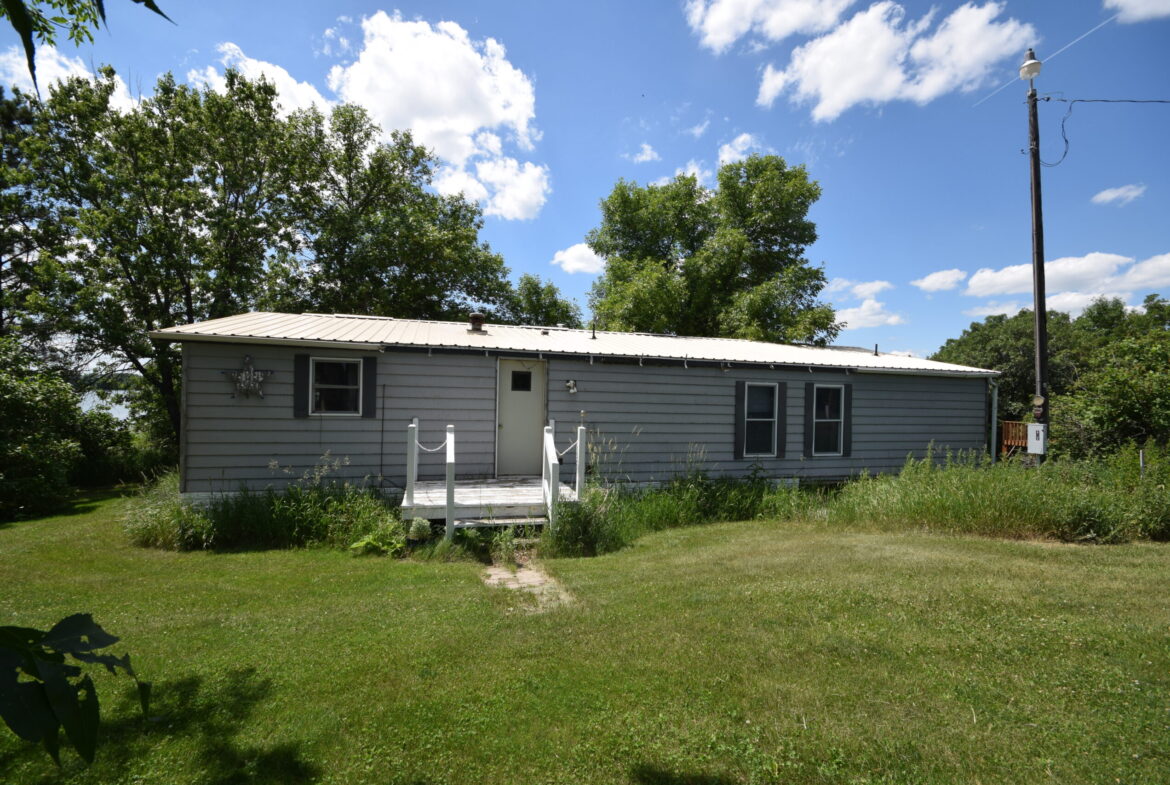 SOLD. South Red Iron Lake is one of NE South Dakota’s quietest, tree-lined lakes. 1,368 square foot double wide mobile home has 3 bedrooms and 2 bathrooms. It needs work, but great opportunity for a do-it-yourselfer! Bring your offers, this property will be sold as-is.